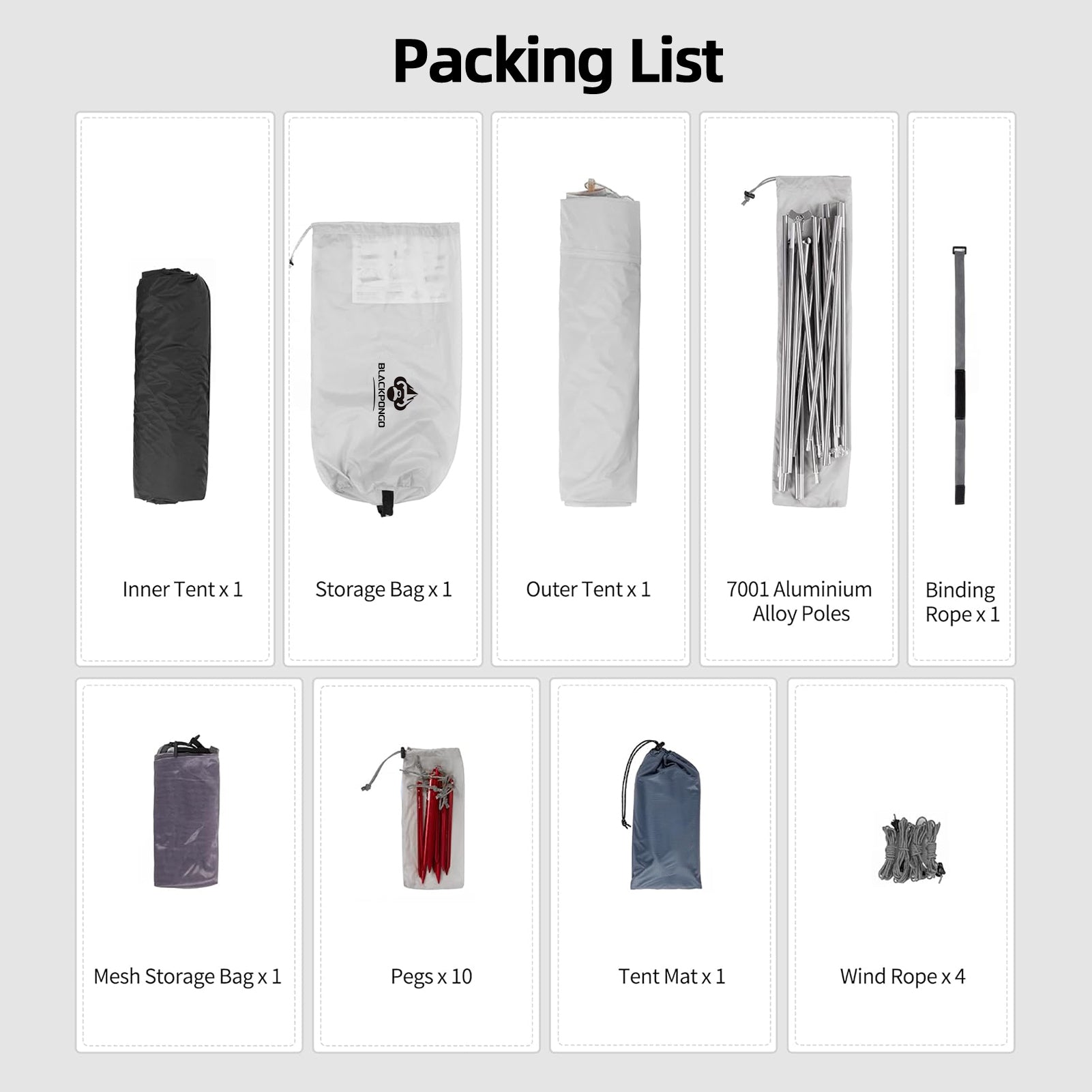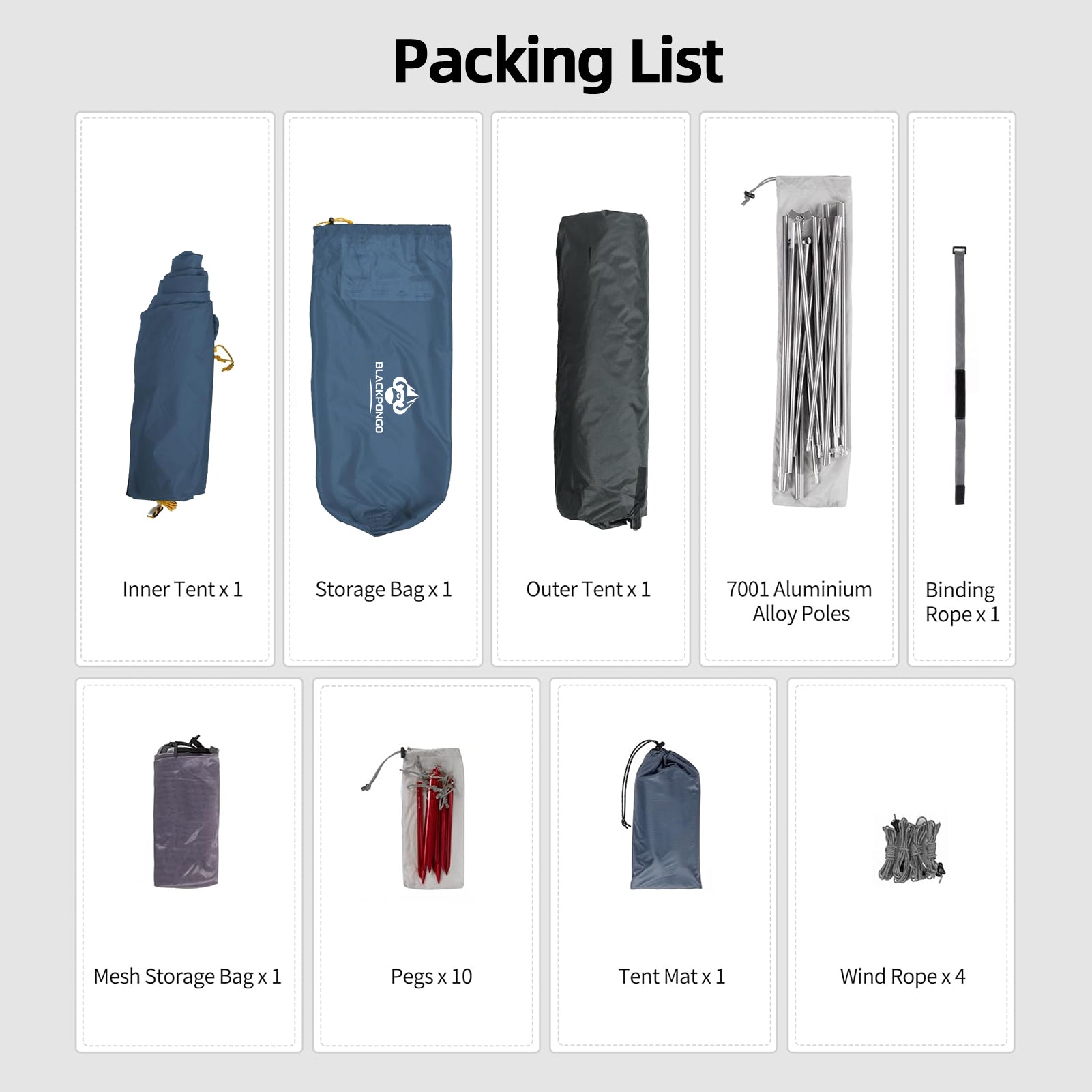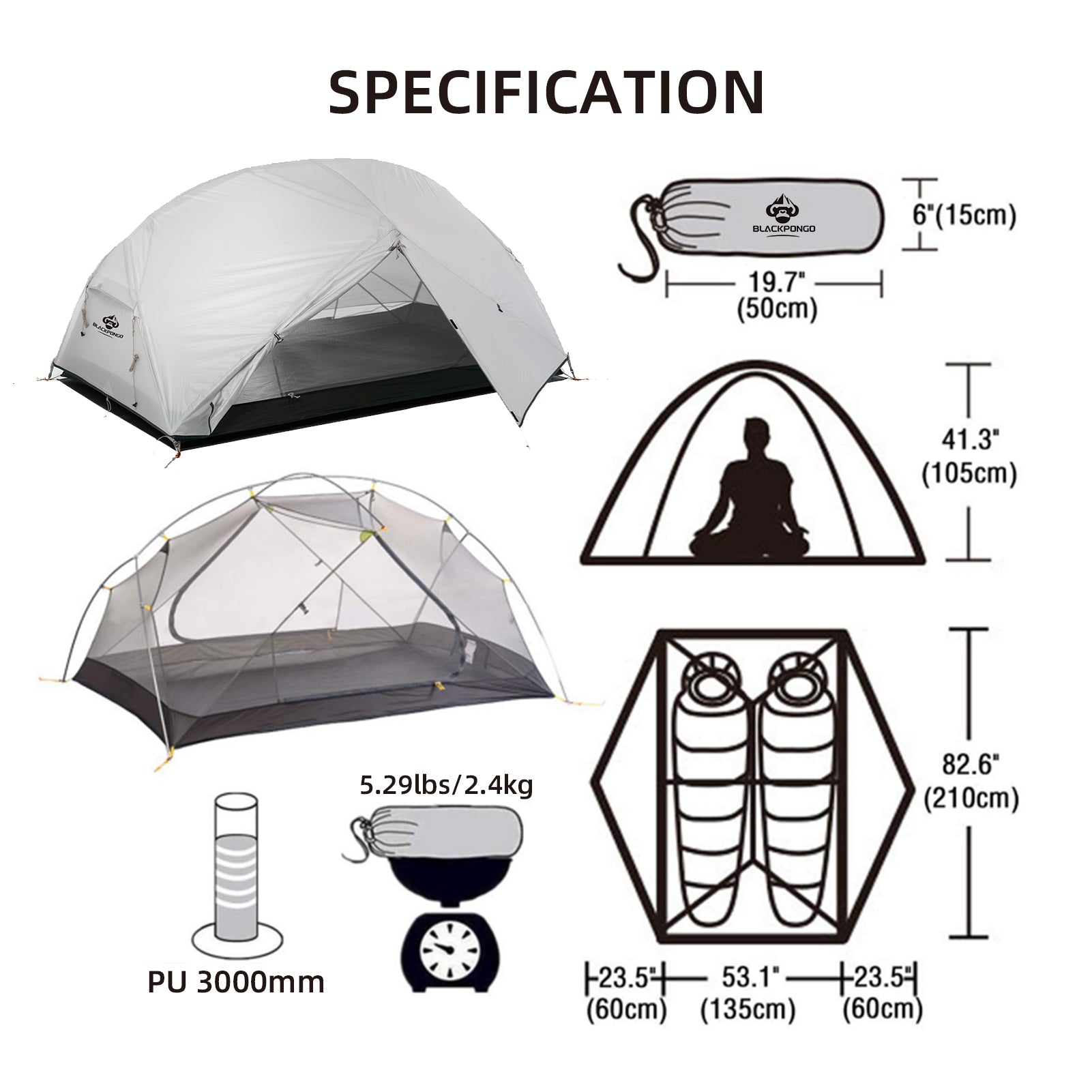 Blackpongo Neptune 2 Person Camping Tent 20D nylon 210T polyester Double Layer Breathable Waterproof windproof professional ultralight Tent with ground mat
