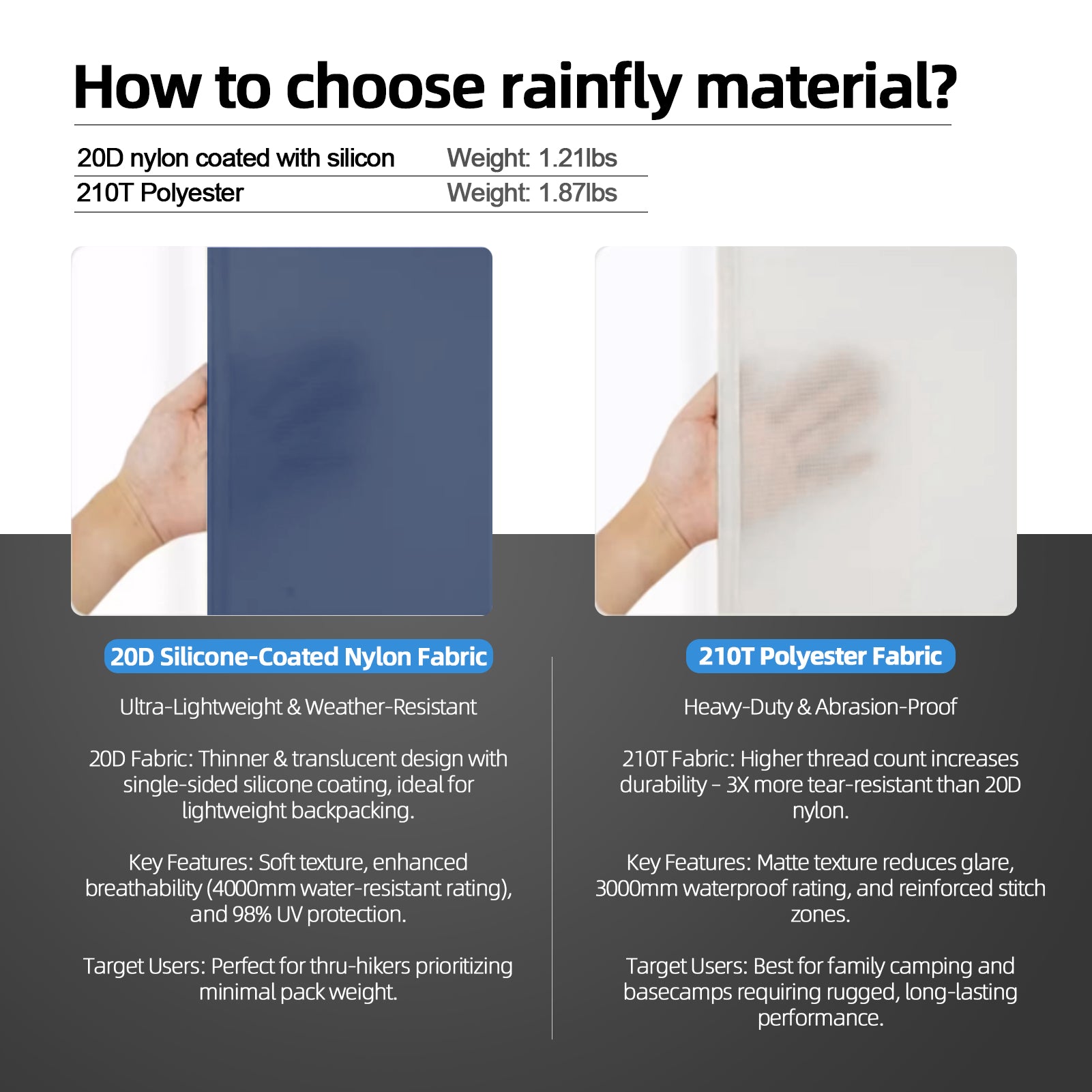 - 2. 3D ventilation system, double door design makes the tent more breathable and not stuffy.